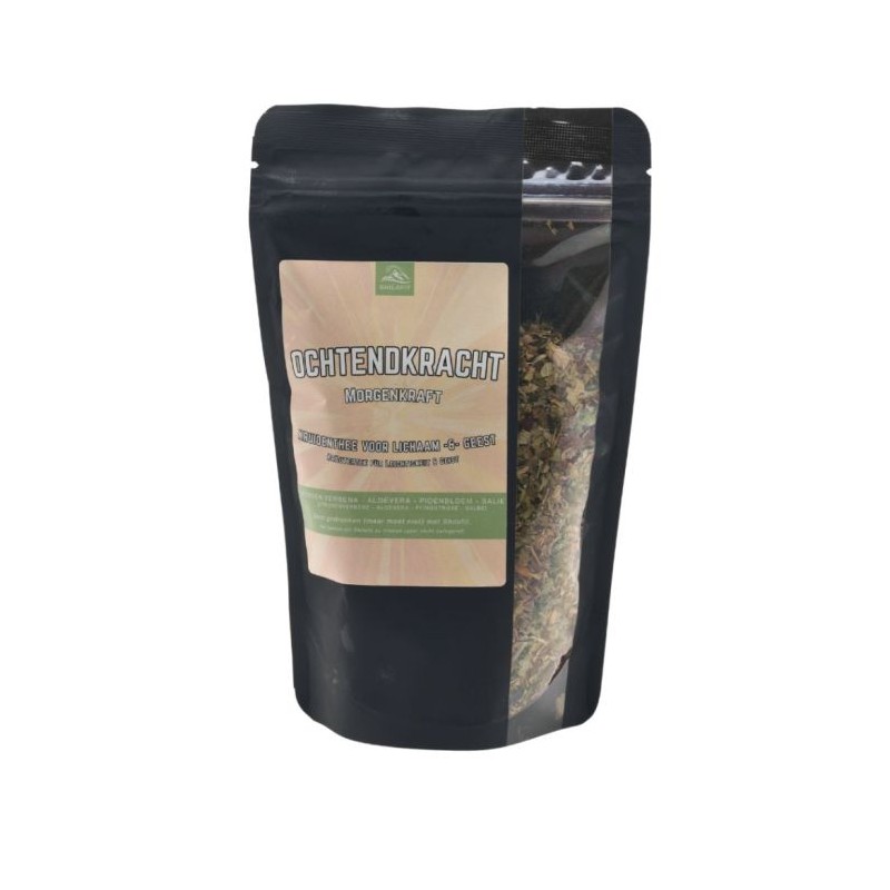 Ochtendkracht is een uitgebalanceerde kruidenthee van Shilafit, ontwikkeld voor een natuurlijke en cafeïnevrije start van de dag.